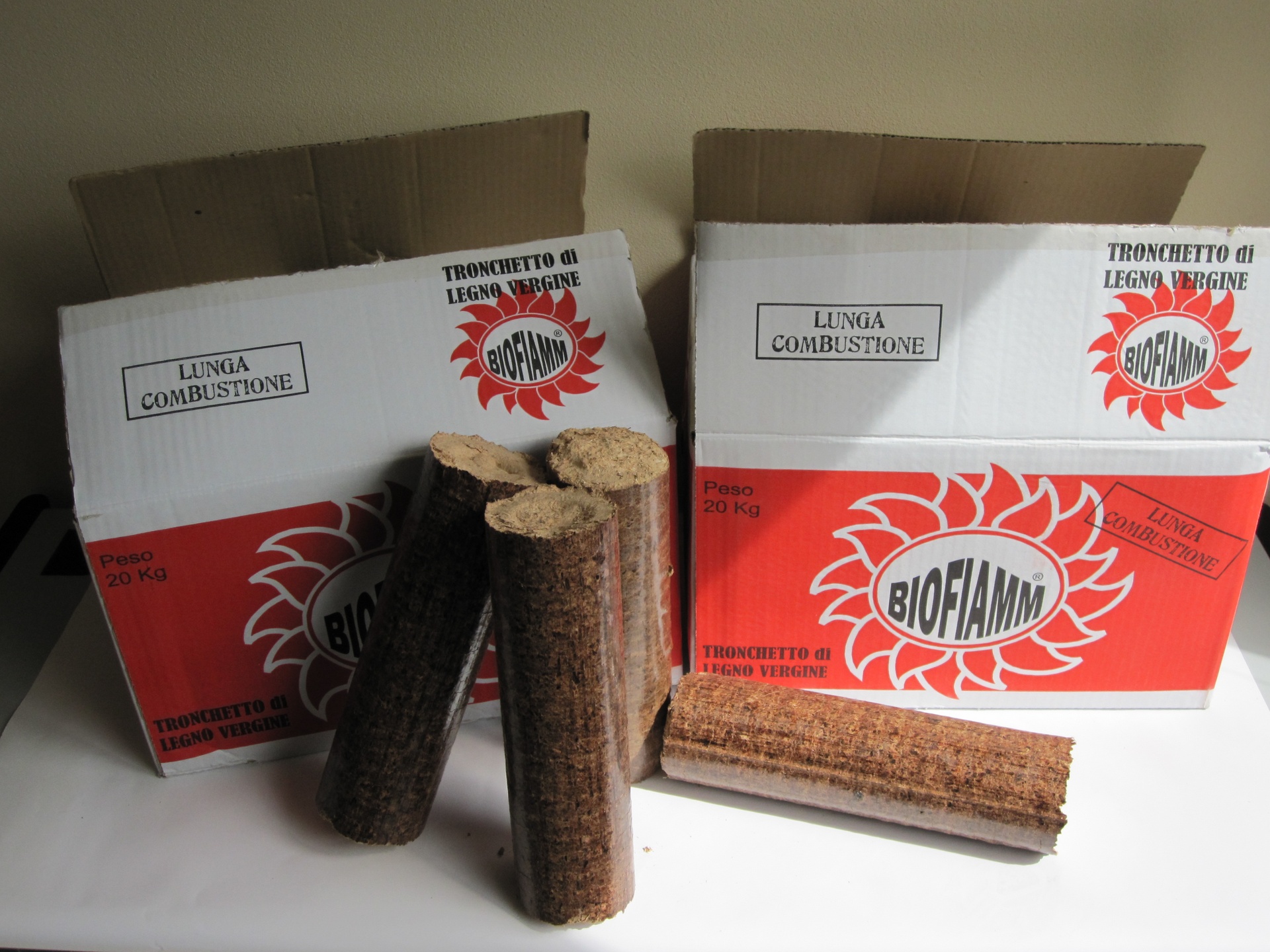 in sacchi da 6Kg, 1 bancale = 105 sacchi, essenza = conifera, lunghezza 19 cm